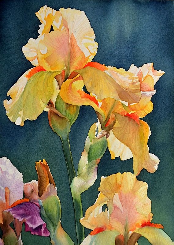 Żółte irysy, 27 x 39 cm. Przydługawy film, który nagrywałem podczas malowania można zobaczyć tutaj: http://www.youtube.com/watch?v=6vUkZ4otcf8 Można tez śledzić moje poczynania na Facebooku tutaj: https://www.facebook.com/KrzysztofKowalskiWatercolorist