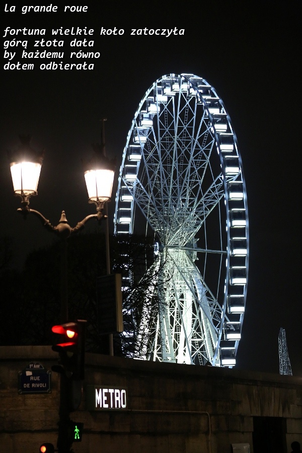 zwykle koło stoi obrócone północ południe przy ulicy Rivoli. Wtedy ujrzysz corridę w Hiszpanii ;)