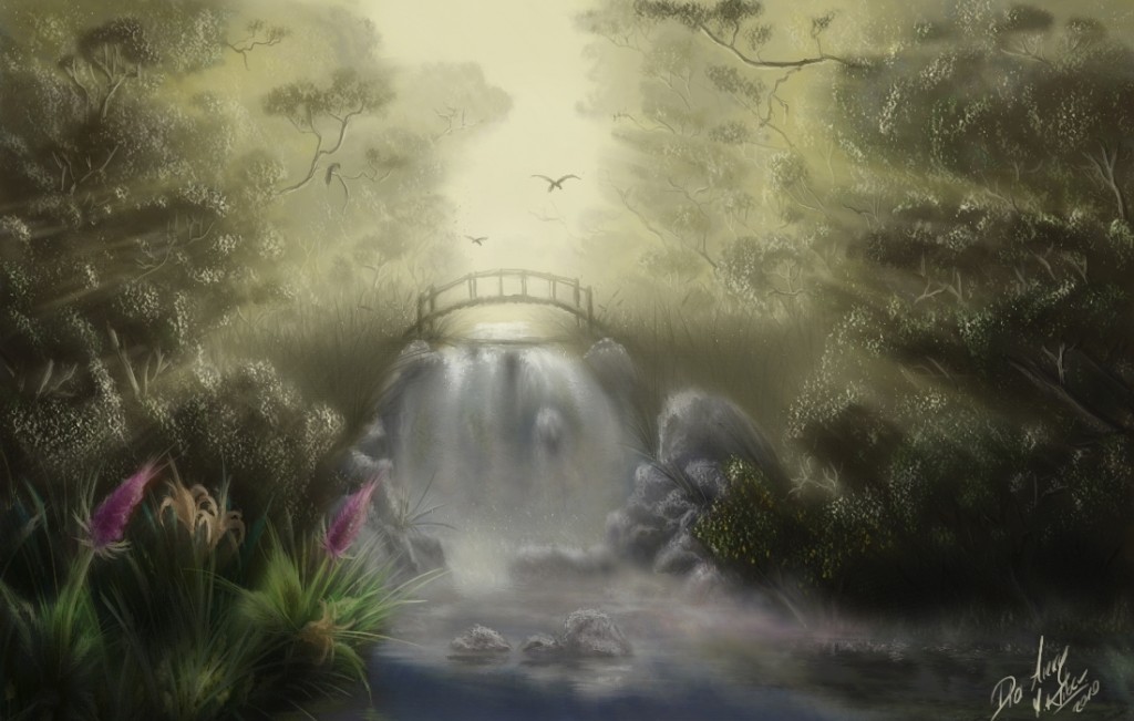 Jest to pierwotny, "surowy" obraz. W końcowym etapie wyglądał ciemniej, mniej barw i jak to Sisey by powiedział: Widać że lubię światełka. Tudzież większy kontrast. To po prostu wersja bez filtrów itp. same pędzle. Rozpocząłem zbyt jasną tonacją, stąd taka bajka.