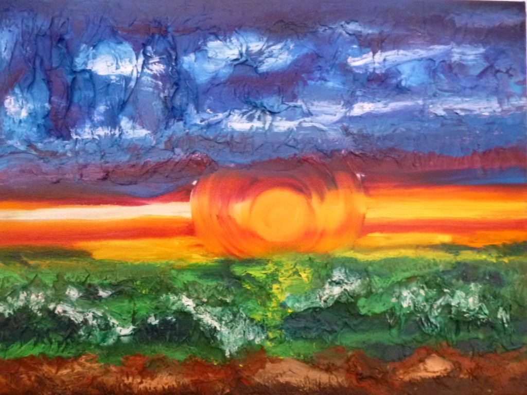 w sieci kolorow-2012 wys-30cm a szer-40cm:)plotno-olejne farby-chusteczka jak legnina:)(inspiracja;calosc wlasna kompozycja) malowany pedzlem ,palcami i bawelniana szmatka:)w 2007 na plotno farba akrylowa nakleilam na gorze i dole obrazu chusteczke legniny i tak sobie lezal obraz zapomniany bo jakos nie mialam pomyslu na moj eksperyment:)dopiero w 2012 doczekal sie mojej weny tworczej w farbach olejnych i mysle ze dalo to swietny efekt:)