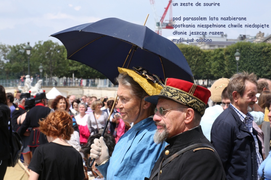 choć lata sterane wspólnotą spraw i znoju/ on wciąż o wojnie ona o pokoju/ tym sprzed półwiecza/ z widokiem na Sekwane/ kied on jeszcze był chłopcem- dziś jest starszym panem/ a młodość w nim krzepi/ pamiątka z Algierii utkwiona blisko serca/ iprzykryta kepi/:)))