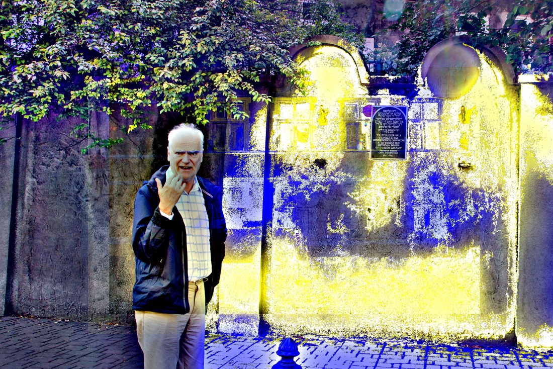The photography was taken in Podgórze, Kraków. On the wall one can see a memorial plaque, in the foreground my late friend, John a'Beckett.